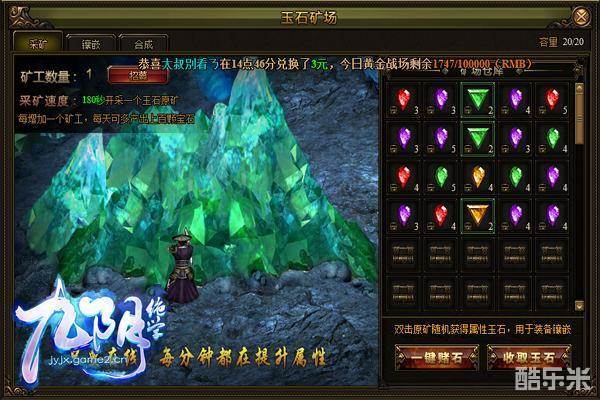 2.合成玉石自动max化,当面对上百颗玉石再也不需要重复操作了或者按max键了,系统取消max键,自动计算最大数值,让你轻轻松松获得高级玉石。免去重复操作!