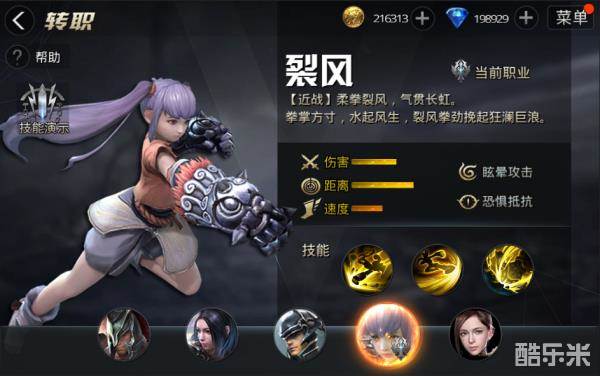 裂风虽然是拳掌职业,但是攻击距离与夺魂是一样的,伤害却比夺魂要高,速度要慢一点,这一点就能很明显的看出来,裂风是一个近战暴力输出职业。相比于夺魂,尽管速度上有所不足,但是伤害的优势可能会让这个职业比夺魂更加的受欢迎。