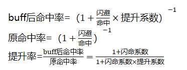 例如:维尔德的降低敌方45%命中的技能,其实就是提升我方82%的闪避(1/0.55-1=0.82)