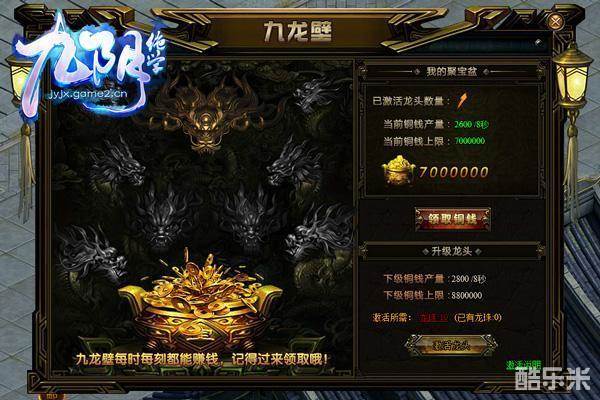 玩家在到达一定的等级、并完成相应的主线任务以后即可开启九龙壁,九龙壁可以为玩家们提供海量的铜钱,是游戏中流通最广的货币之一。