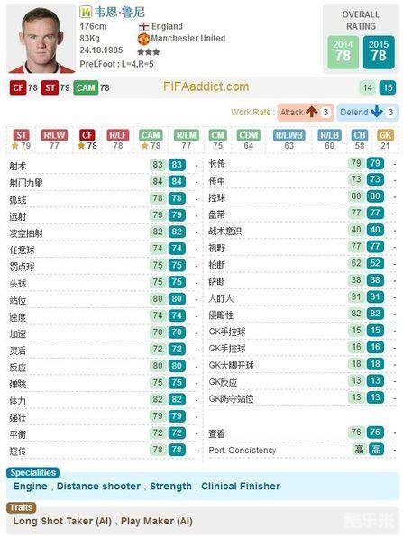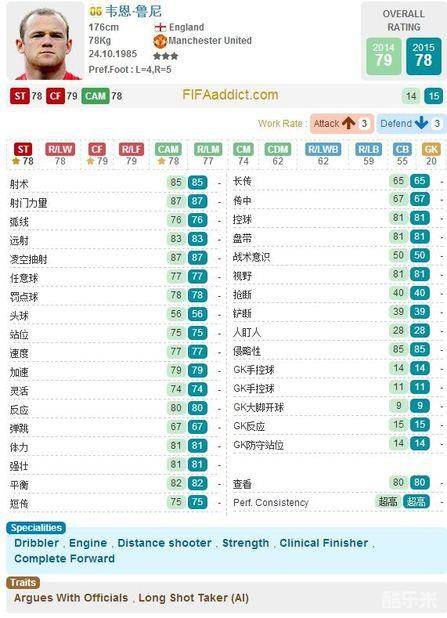 虽然身高不高,可鲁尼体型肥胖,也从来不怵身体对抗,虽然现实中状态惨淡,可游戏中却能把对面后防搅的个地覆天翻,加三08鲁尼终结能力出色,射术87点,手感也是非常优秀,平衡88点,灵活也接近80点,传控也是非常的不错,重点指短传能力,当然远射的隐藏以及84的远射能力在新引擎下是非常重要的致命武器,当然,如果你是3卡及以上,还可享受强化套的加成,真是可以胜任前场很多个位置,游戏中依旧可以说,家有鲁小胖,福气又安康!