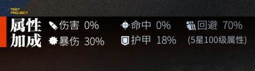 伤害0%,命中0%,回避70%,暴伤30%,护甲18%