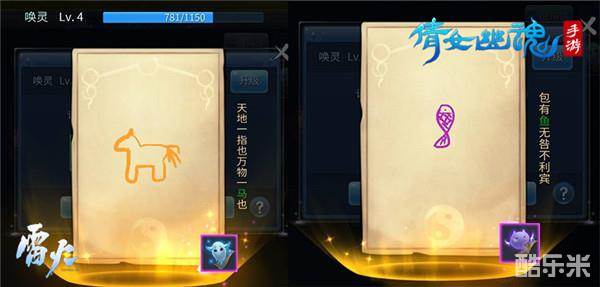 唤灵时需要玩家根据系统提示作画,匹配度越高灵符效果将越好。同时灵符具有橙、蓝、红、紫四种品质,并且自身带有词条属性,唤灵等级的不同将影响获得灵符的品质。