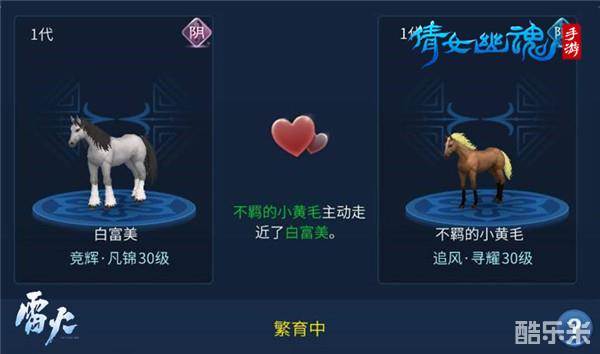 除此之外倩女手游还推出了游戏中的首个生育系统——马匹繁育,也可以帮助玩家获得新的小马驹。通过马匹繁育得到的小马驹将会有机会遗传父母的外观和技能,同时两匹马匹的品质将会影响后代的品质,与好友的马匹繁育将会使获得高品质马匹的概率增加。