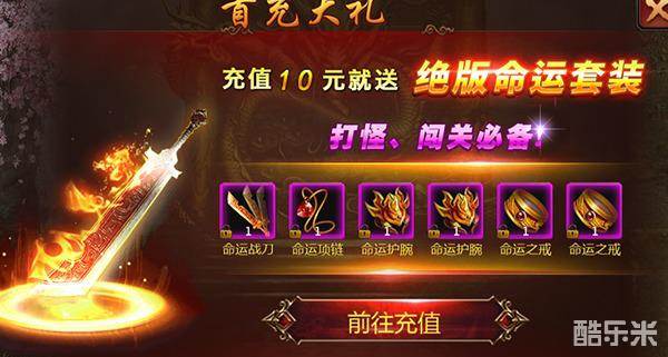 初入游戏,先来个首充是非常有必要的。首充送的命运套装属性是非常不错的。小编经过研究发现,命运套装的属性要比任务送的40级白装高一点,很好的解决了前期的装备问题。
