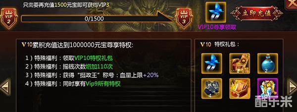 当你在游戏中遇到打怪困难、PK不过其他玩家的情况时,千万不要忘记了镶嵌宝石、强化装备、洗炼装备来提升你的属性。每日福利中的连续登陆、在线礼包、等级礼包、每日签到奖励里面都送了很多的宝石、黑铁石、洗炼石等道具。充值不仅可以获得充值的元宝,《烈焰奇迹》还未广大玩家提供了首充、单充、累充、VIP等充值福利,玩家可以结合充值福利的条件和自身的能力来选择充值的金额。
