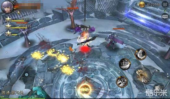 这个平台上有4个很分散的远程怪物,具有燃烧和冰冻攻击效果,特别需要小心,因为小怪过于分散一个大招无法清理完毕,注意翻滚躲避击杀。