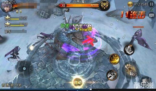 小BOSS白熊,需要注意的是BOSS虽然第一条血条吃控制技能,但是如果BOSS爬地以后,就进入免疫控制技能的状态,无法被击飞,直到冲撞施放结束以后为止,所以大家需要注意的就是BOSS爬地以后,在他快冲撞的同时释放大招进行躲避。