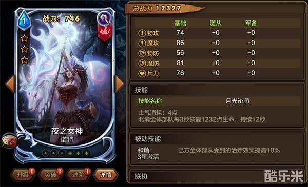 ③ 3星银卡夜之女神诺特,可以治疗北境全体部队。