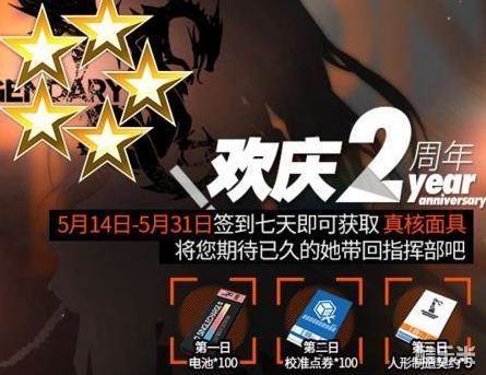 5月14日~5月31日期间,累计签到满七天,即可获得【真核面具】x1!真核面具可以在5月20日开放的活动商城中,【兑换任意一名兑换列表中的五星人形】!