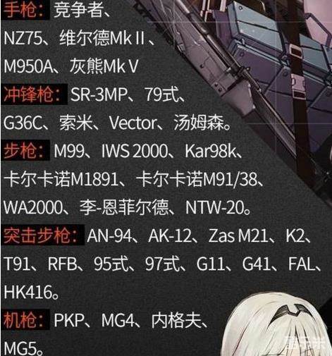 冲锋枪:SR-3MP、79式、G36C、索米、Vector、汤姆森。