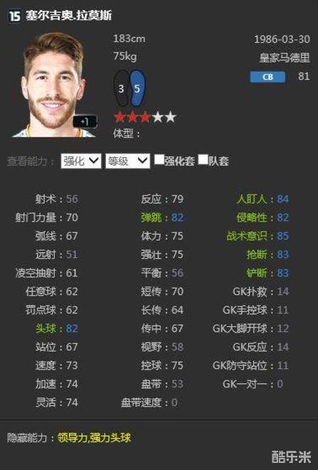 FIFAonline315拉莫斯,是皇马队伍中,绝对的主力后卫。1986年出生的拉莫斯,有着铁一般的意志,在皇马中,拉莫斯,一直兢兢业业,为银河战舰,立下战功,而在15卡中,拉莫斯,依旧是一名铁卫,在皇马的后防线上,凭借自己的能力,拦截对方的进攻。