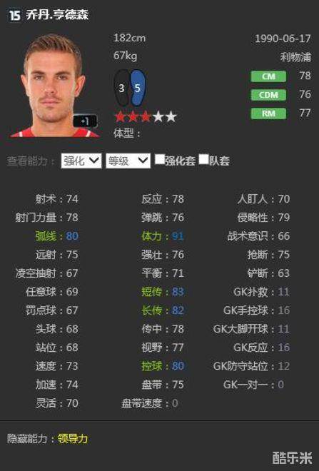 15亨德森,是一名90后的球员,年轻富有朝气。达到91的体力值,让亨德森,足以在全场来回跑动。而搭配上传中高手的称号,让15亨德森,可以在边路起球,为高中锋,创造进球的机会。亨德森的进攻和防守参与度,都为高。可以说,90后出生的亨德森,是英格兰未来中场的大将,而在游戏中,亨德森,也是值得玩家购入和合卡。