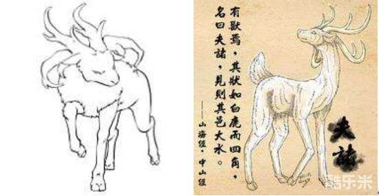 《山海经?中山经》记载:中央第三列山系的首座山叫做敖岸山,山中有一种野兽,形状像一般的白鹿,却长着四只角,名字是夫渚。它在哪个地方出现哪里就会发生水灾。