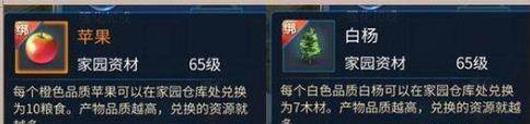 作物可以在家园仓库处兑换为资源,产品品质越高,兑换的资源就越多。资源是家园维护和升级所必须的。