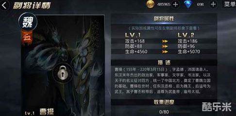 曹操:对于这个副将来说他们主要的作用就是为我们带来生命值,虽然防御一般,但是我们只要拥有足够多的生命值还是能够与对手一战的,而他们升级之后主要的还是生命值,所以我们玩家在资源稀有的时候需要注意怎样培养才能够为带来最大的价值化。