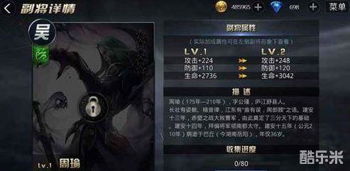 周瑜:虽然也是橙色副将,但是出来的时间较长,也是在家成方面最不强力的副将,主要的就是为我们带来防御能力,虽然生命之加成一般,但是只要我们防御能力累积起来还是很暴力的,想要存活下来获得胜利还是很轻松的。