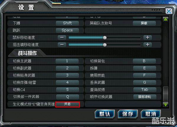 生化模式按“E”变英雄,将“屏蔽”改为“开启”即可。