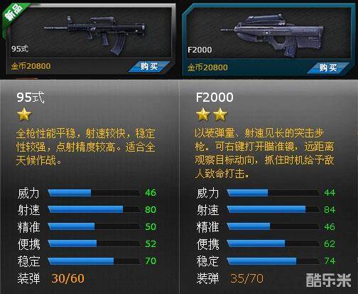 火线精英新增武器95式是一把能够用金币购买的武器,只要进行一定时间的游戏大家都能购买,而F2000也同样属于一支金币武器,许多朋友纠结这两把枪之间的选择,这里为大家做个对比。