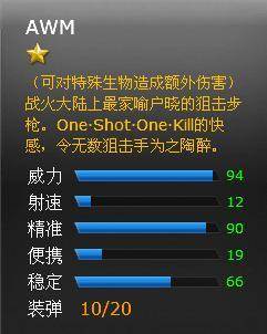 狙击枪一般大家就使用AWM,如果觉得有能力,可以使用巴雷特。