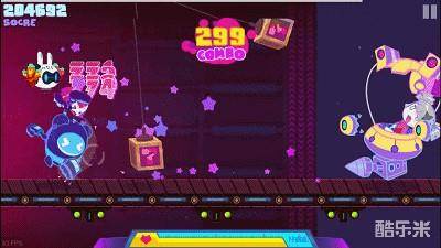 选择不同的服饰,在跑酷过程中就会以不同的形象登场。如果你选择不同的难度,也就选择来了不同节奏点的谱面,谱面是讨论音乐游戏常见的词汇,简单来说就是在一段音乐中选择哪些地方作为节奏点,这些节奏点就是游戏里玩家要击打或输入的部分。选择不同难度的谱面换言之也就选择了怪物的密集度。角色在奔跑过程中有击打和跳跃两种操作方式,同样怪物也会以上下两路陆续出击,其中也会夹杂一些出击方式不同的敌人,根据谱面的安排,玩家控制的角色的击打动作也会相应变化,一路上确实是在不停地”手舞足蹈”。角色表情夸张激萌,而关卡的BOSS则傲娇张扬。不同的场景风格有不同的敌人与音乐,从夜魅都市到恶魔城,从烂漫海滩到科幻高楼,如果团队还有余钱余力的话,可能还会做更多的场景。