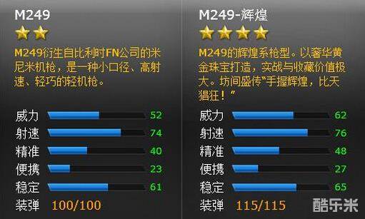 1.先看属性图,简介倒是挺炫酷的。威力本来就大,强化之后不是很明显。多了15发子弹也很一般,几下就打完了。唯一的亮点就是精准高了8,打击远距离目标时效果明显好多了。实际使用中和普通版本没有明显区别,也许这就是血钻最容易抽到这枪的原因吧,不建议玩家花钱抽这枪。