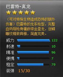 不过。。。。这射速也。。。。这便携也。。。。太烂了。。。。但是~!次枪是生化模式中土豪的绝佳首选!巴雷特一枪就能秒杀2000血的变异体,这征龙么,打变异体母体一枪一个爽!打机甲一枪一个重创!绝对是神器,就是没技能,但还是大力推荐!
