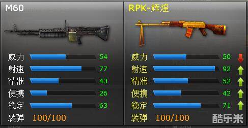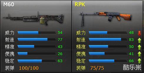 首先的RPK,貌似M60没什么劣势,机关枪的优势:装弹、威力都高出许多。