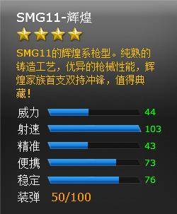 先看看SMG11-辉煌的属性介绍: