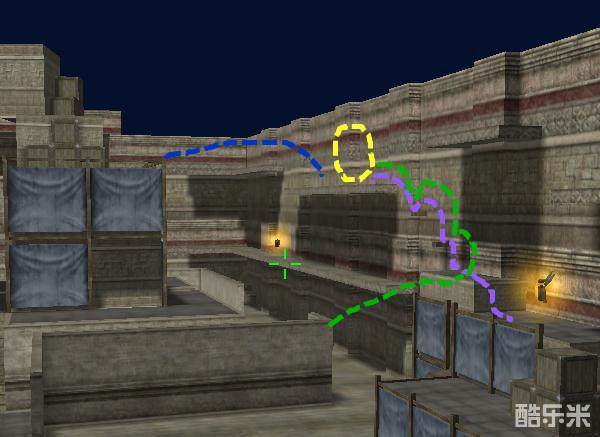 这个守点很有名,每局肯定有人来,如果正面进攻不行的话可以选择蓝色路线。
