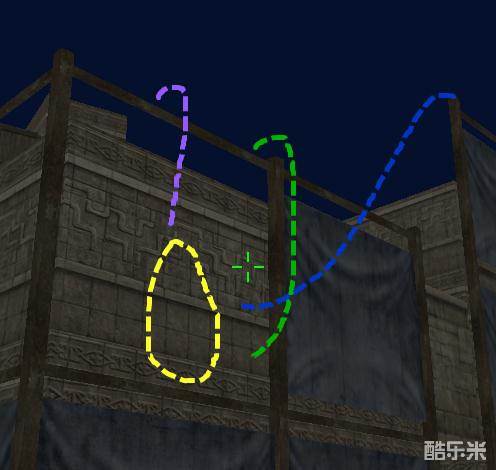 借此说下一个小技巧,如果有人从绿线下来的话你可以在红色的地方等待猎物。