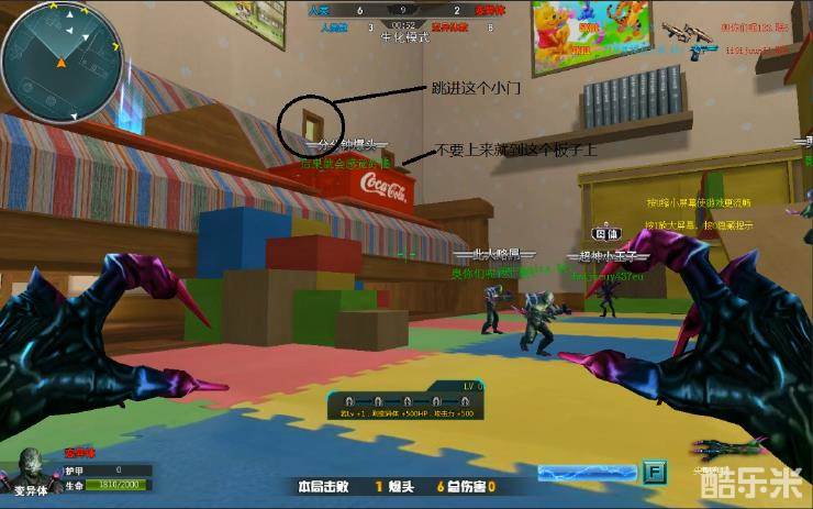 1.首先同志们看这里,从前面跳过去蹦到那个小门里面去应该是首选,大多数情况开局很少有太多人聚集在这,突然蹦出个变异体概率很小。