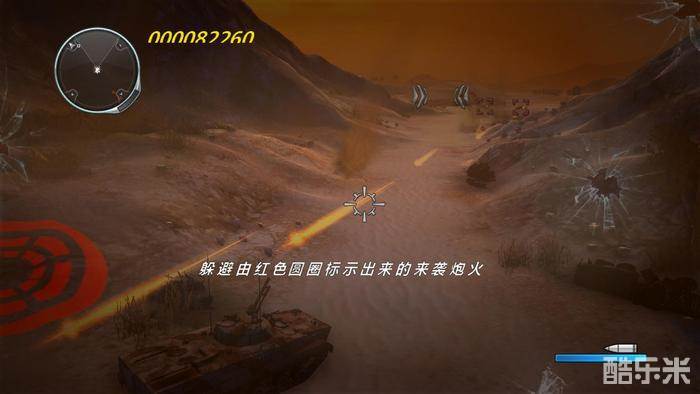 本关主线是营救友军,中途经过一次狙击战,同时本关主要驾驶坦克出战。狙击模式比较麻烦,必须准确的命中所有敌人,一但有人逃脱,警报响起立刻就会有无数导弹向你飞来。坦克的驾驶与直升机大同小异,除了不能上升下降外区别不大,值得注意的是,坦克炮弹威力大冷却长,所以请瞄准再使用,以免浪费。并且,在最后阶段,敌人会动用轰炸手段,驾驶坦克的同时请留意地面红色标志以免被炸到。