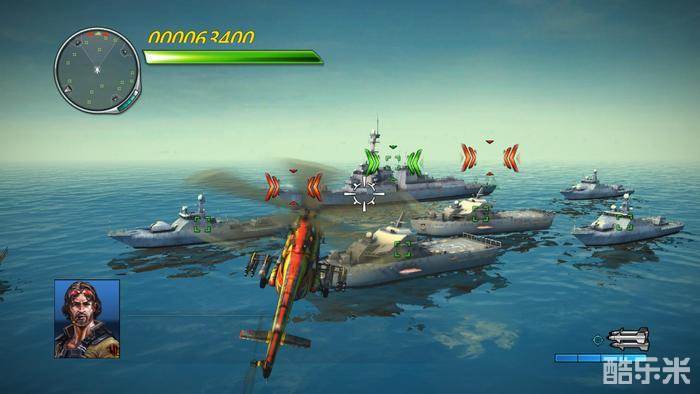 本关开始先是直升机吊着一辆坦克抢滩登陆,这时候出现了机枪免疫的重装甲车,所以别考虑了用导弹轰吧。之后是海上防卫战,由于对方水雷速度极快,玩家最好加速冲到近处,一枚导弹解决一枚水雷,速度够快的话大概船会中三次就完成任务了。之后用深水炸弹攻击潜艇,待潜艇放出导弹后去陆地接走友军,管卡结束。