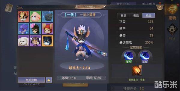 宠物图鉴:可查看全部宠物及对应属性;宠物分为“良品”、“极品”及“绝品”(其中不同品阶属性及技能有所不同)。