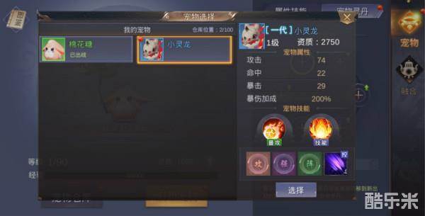 宠物仓库:可容纳100只宠物,宠物出站需要在宠物仓库选择对应宠物才能出站哦。
