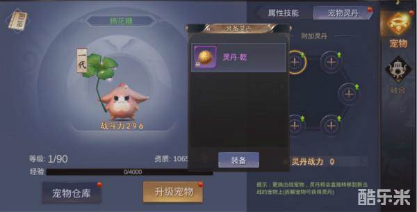 宠物灵丹:宠物灵丹可以添加6个,且更换宠物不影响灵丹(灵丹会直接转移至新出站宠物)。