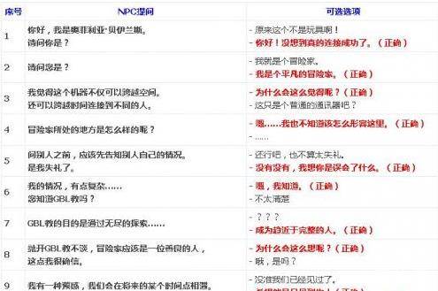 注:为了防止出现部分玩家对话、选项不同的情况,所以特地列出了NPC的提问以及两个选项,红色加粗即为正确选项。