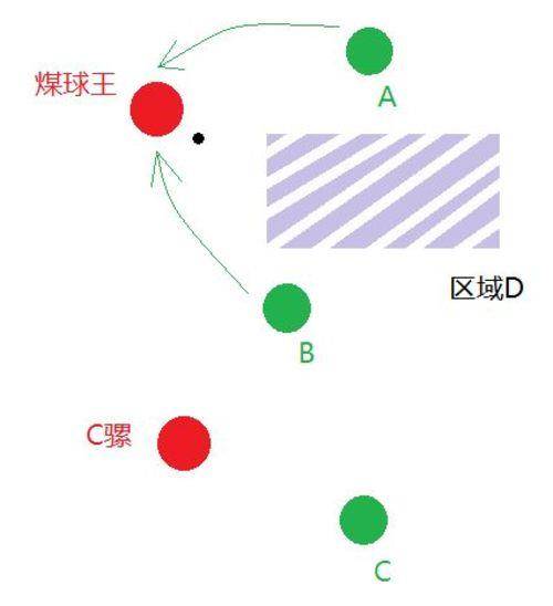 上图中煤球王带球,现在光标在A身上,这时你会控制A去抢球,不要按d,只按加速,A的跑动路线完全是由你操作的,大概0.5秒甚至更短的时间,切换到B,手控B去防守。同样,大概0.5秒甚至更短的时间,切换到A,反复的切换,那么在这0.5秒甚至更短的时间你要做什么事呢?
