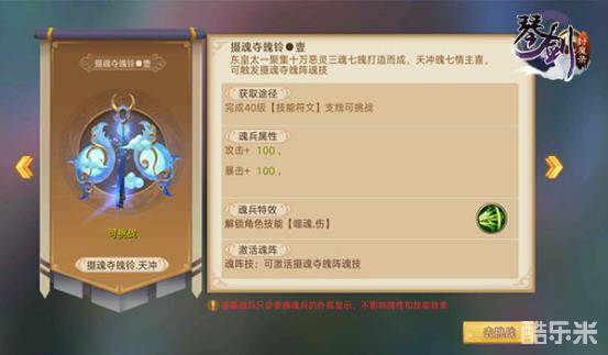 进入《琴剑:封魔录》中后,上仙可随着主线副本开启魂兵系统,点开亦可看到开启挑战的条件,满足条件并且挑战成功便可获得对应魂兵。