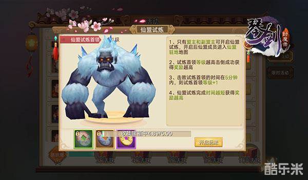 第一次开启的仙盟试炼首领等级为1级,在5分钟内击败试炼首领,则下一次开启的试炼首领等级+1,试炼首领等级越高成功击倒,且试炼完成的时间越短,获得的奖励越高,在短时间内击败一个强大的试炼首领可谓是五谷丰登啊,所以这需要众多仙友合力出击,互相配合啦。