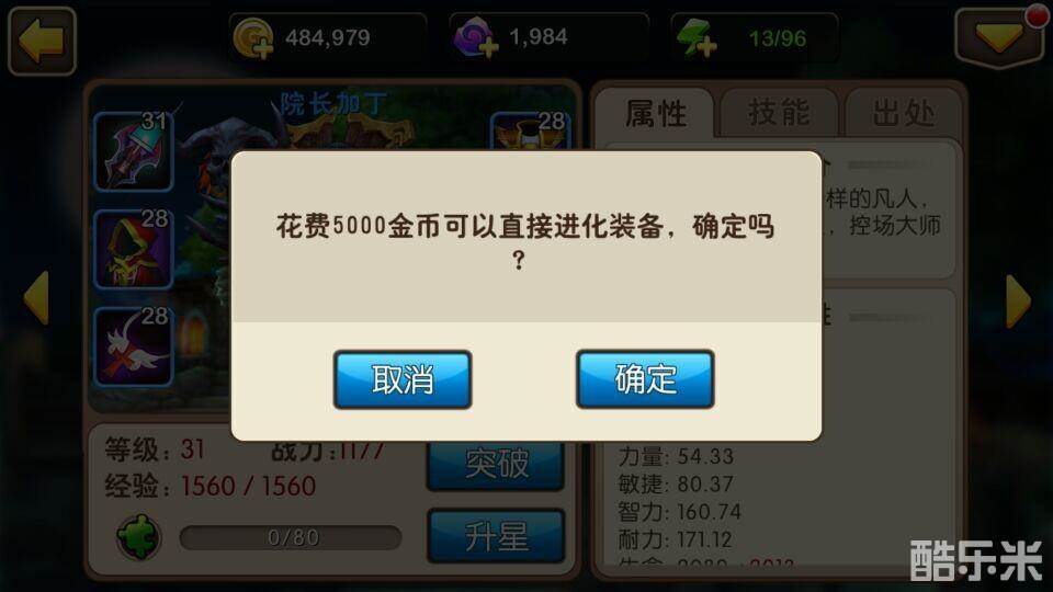 ②无论装备需要进行哪一种操作都离不开英雄的等级。玩家等级提升之后英雄的等级上限也会随之提升,装备的升级上限即为英雄等级上限,玩家需自行给英雄喂养经验药水以达到升级效果。
