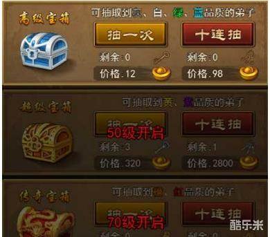 这个是要花元宝才能开的宝箱了,总的来说大家还是等级越高越好,然后再去开箱子,不然可是拿不到好东西的哦。因为最好的传奇宝箱只能抽到橙获红品质的弟子。所以大家赶紧去升级抽奖吧。