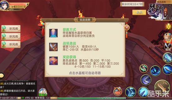 南北战场中有三座水晶,摧毁水晶获得水晶归属会随时间增加战场积分,也能根据击败敌方人数获得积分,阵亡则扣取积分,每一轮战斗结束后将会根据名次获得对应的战场点。