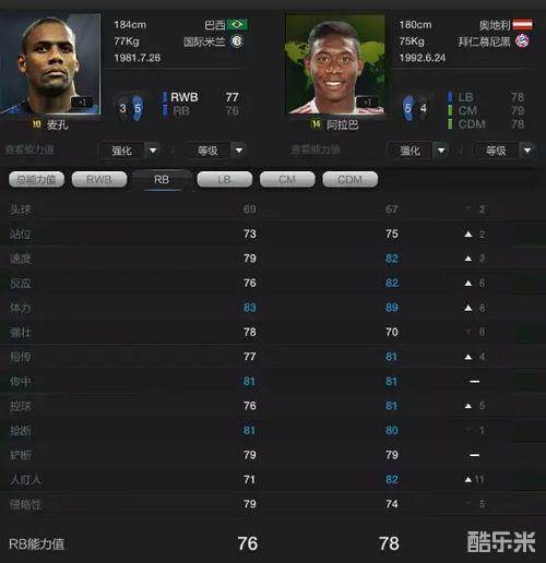 所以对于边后卫防守而言模型、速度、体力、抢断、这四个数值是非常重要的。进攻而言传中、速度、体力这三个数值非常重要。