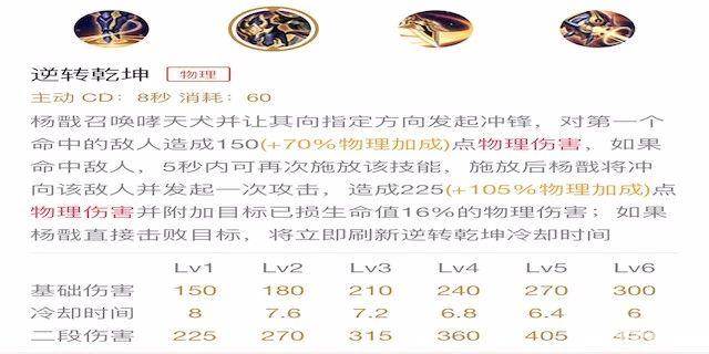 解析:这个技能距离较远,并且有两段伤害且第二段伤害有追踪和斩杀效果,当第二段技能伤害击杀目标可以立即刷新一技能,因此这是一个非常适合团战收割的技能。由于技能第二段有追踪效果,这也是杨戬唯一一个位移技能,杨戬可以通过此技能标记敌方英雄或野怪进行追击或者逃跑。此技能是一个指向性的技能,因此释放技能命中率的高低尤为关键。