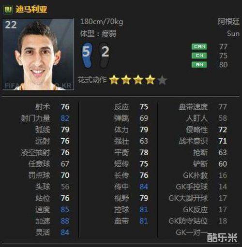 9、w迪玛利亚,弧线能力也很棒的,推荐把他放在右边前卫,尽量不要打前腰,因为逆足的原因。