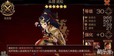 武松:jjc又一强控,主动技能,翻起巨石cd:150秒给所有敌人造成140%的伤害。有较高的几率眩晕敌人。这绝对是神技啊,较高的几率眩晕敌人。不要小看这“较高”两个字,基本上每次武松放这个技能就是群晕啊,最少都能晕三个。晕三个以下的,可以去合成了,有可能出猴子哦,而且武松的被动是降低自身受到的50%伤害,使武松的存活率大大的提高了昂。