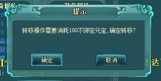 说明:1星至6星所花费元宝均为100YB,7星200YB,8星500YB,9星5000YB。三、点击确定后,原装备的锁灵属性和幸运值均转移到目标装备,如下图: