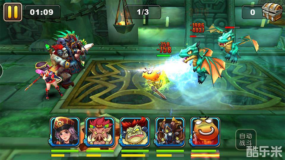 3.难点来了,进入第三个场景后手不要抖,先让双方平稳对峙,尤其是对于装备和星级偏差的玩家来说,恐惧领主还是相当之肉的,不要过快的释放大招以防被对方反扑。